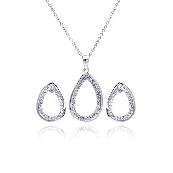 Sterling Silver 925 Clear Open Teardrop CZ Stud Earring and Necklace Set - SSLJS015