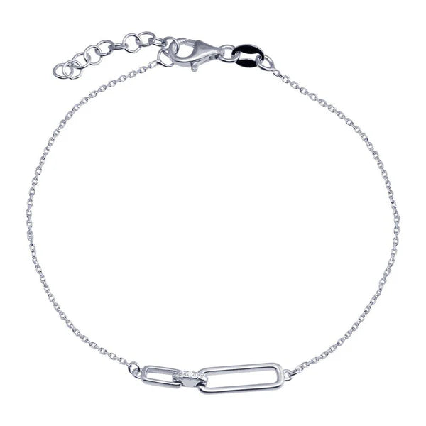 Sterling Silver 925 Big and Small Rectangle Charm CZ Bracelet - SSLB008