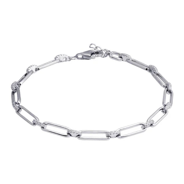 Sterling Silver 925 Rectangle Link CZ Bracelet - SSLB007