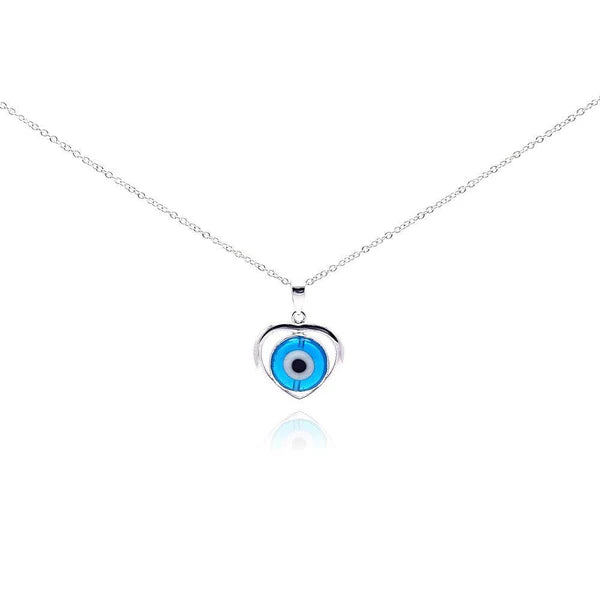 Sterling Silver 925 Open Heart Evil Eye CZ Necklace - SSLPN053