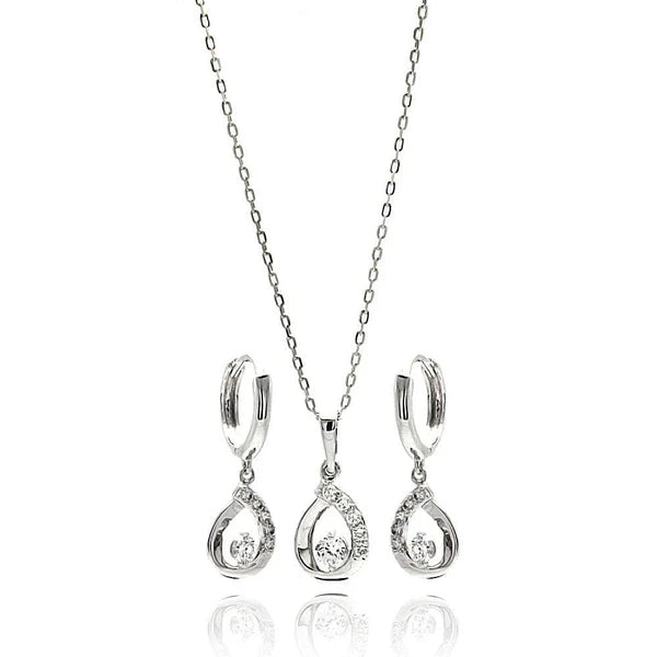 Sterling Silver 925 Open Teardrop Clear CZ Leverback Earring and Necklace Set - SSLJS013