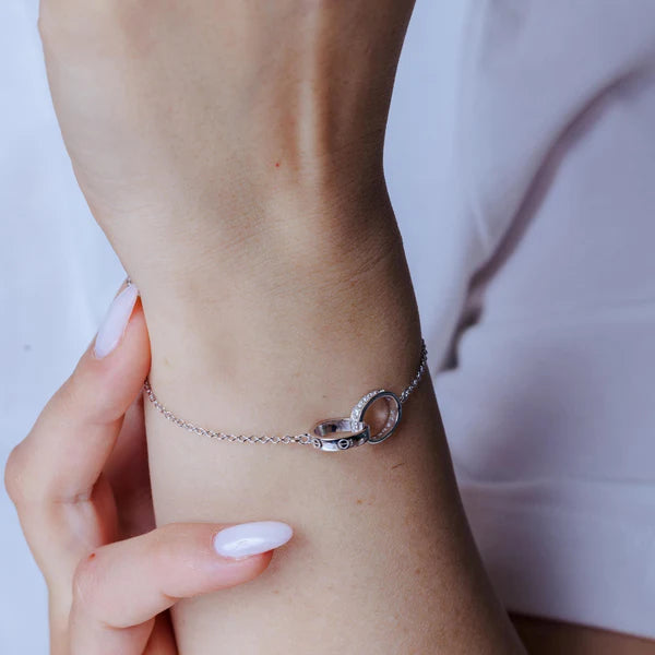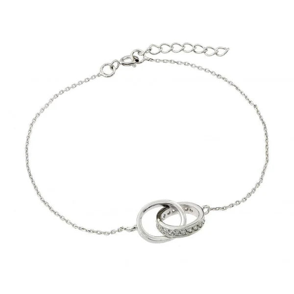 Sterling Silver 925 Double Ring Link CZ Bracelet - SSLB003