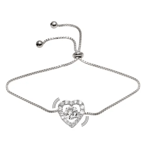 Sterling Silver 925 Heart Dancing CZ Lariat Bracelet - SSLB002