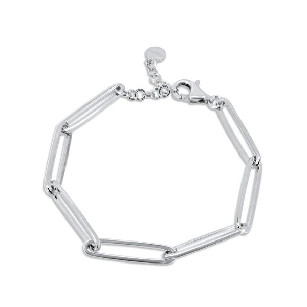 The Sterling Silver 925 Rhodium Plated Paperclip Adjustable Bracelet with 5.5mm Long links is a sleek and contemporary piece of jewelry that exudes style and versatility. Crafted from high-quality sterling silver, it features a rhodium plating, providing a lustrous and durable finish. The bracelet is designed with long paperclip links, measuring 5.5mm in width, which create a modern and minimalist look.