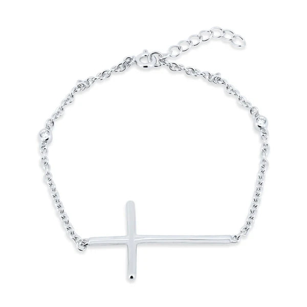 Sterling Silver 925 Sideways Cross Bracelet with CZ - SSLB022