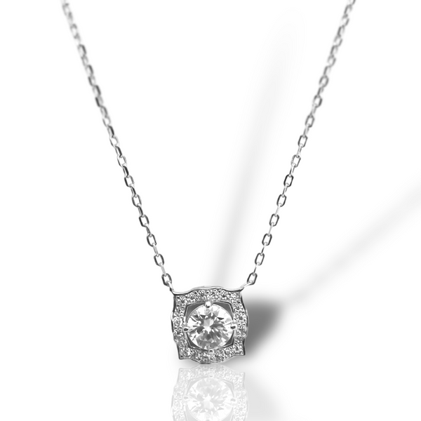 Κολιέ από ασήμι Moissanite με στρογγυλό κέντρο πασιέντζας Brilliant Cut 0,80ct (6mm) με τετράγωνο φωτοστέφανο