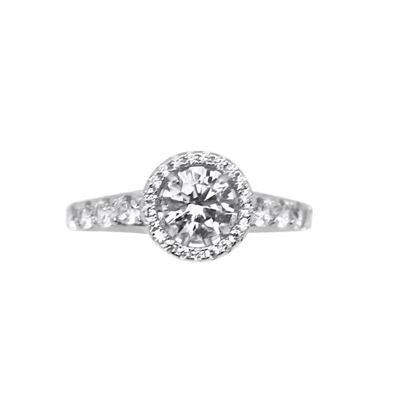 Sterling Silver Moissanite Engagement Ring featuring 1.20ct (7mm) Round Brilliant Cut Center Stone with Round Halo