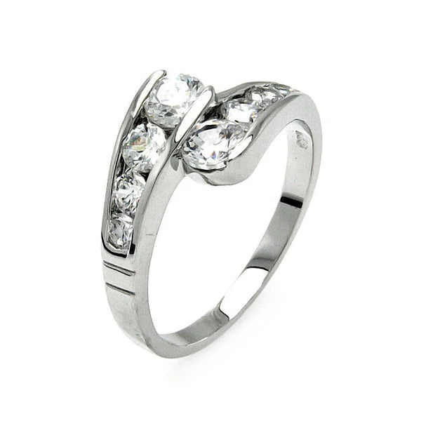 Sterling Silver 925 Clear Channel Set CZ Overlap Ring - SSLR023