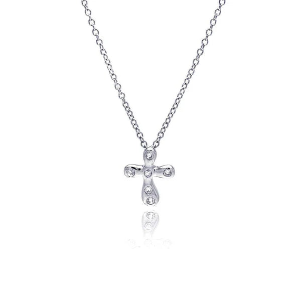 Sterling Silver 925 Clear CZ Cross Pendant Necklace - SSLPN048