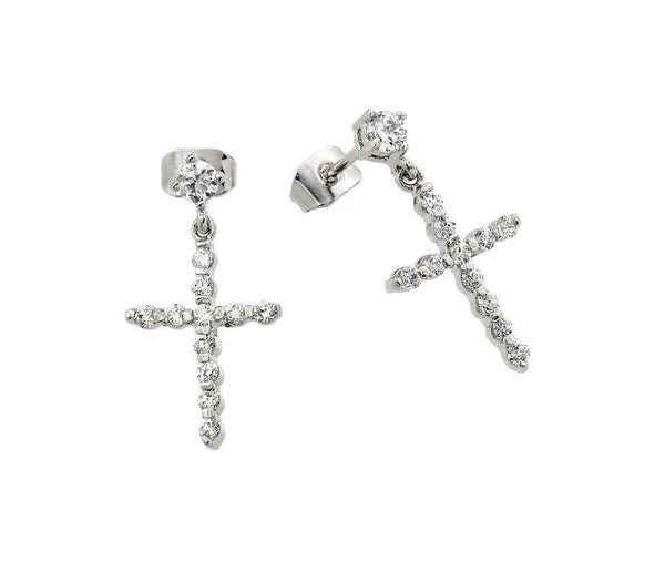 Sterling Silver 925 Cross CZ Dangling Earrings - SSLE015