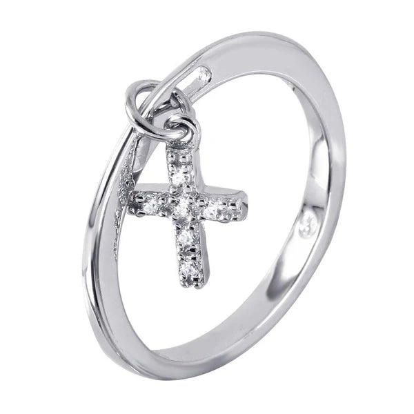 Sterling Silver 925 Dangling Cross Ring with CZ Accents - SSLR056