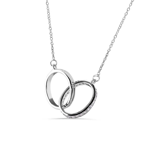 Indulge in the timeless beauty of our Rhodium Plated 925 Sterling Silver Intertwined Oval Clear CZ Necklace. Crafted with the finest materials, this necklace boasts a sophisticated design that intertwines ovals adorned with sparkling clear CZ stones. Elevate any outfit with this luxurious and exclusive piece.