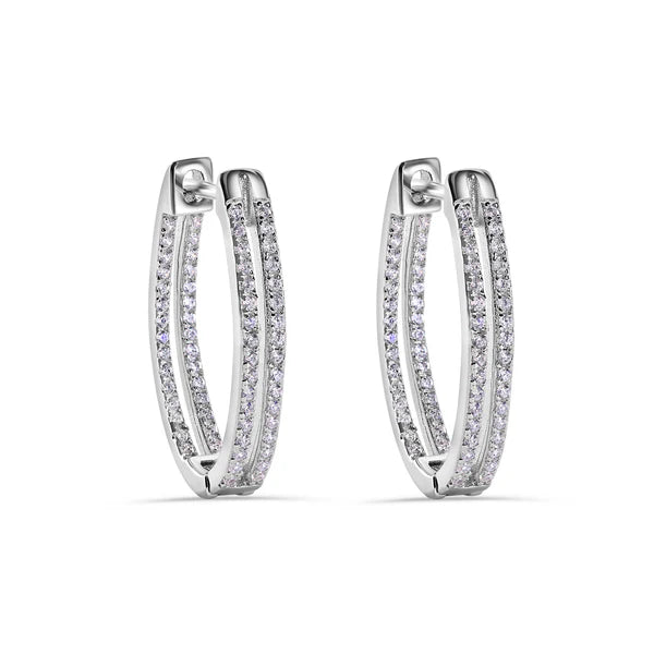 Sterling Silver 925 Pave Double Clear CZ Hoop Earring - SSLE003