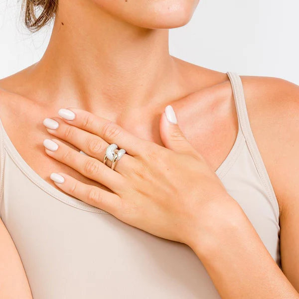 Sterling Silver 925 Clear Micro Pave CZ Knot Ring - SSLR037