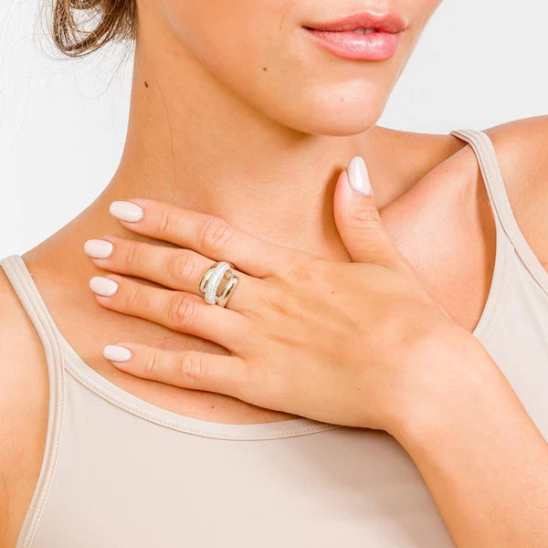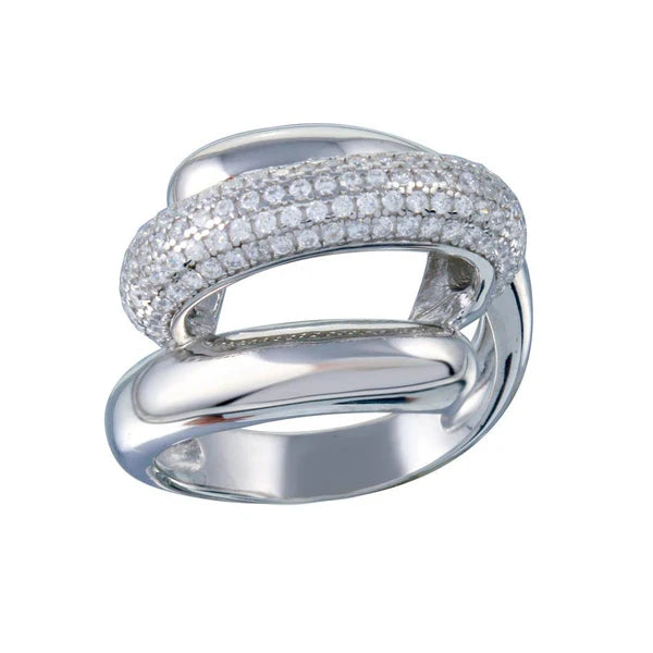Sterling Silver 925 Clear Micro Pave CZ Twist Ring - SSLR017