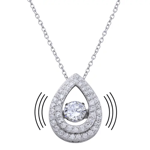 Sterling Silver 925 Open Teardrop Pendant Necklace with Dancing CZ - SSLPN002