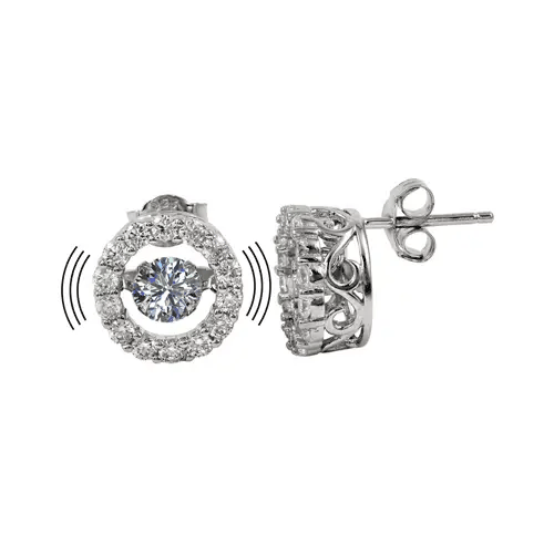 Sterling Silver 925 Round Dancing CZ Stud Earrings - SSLE002