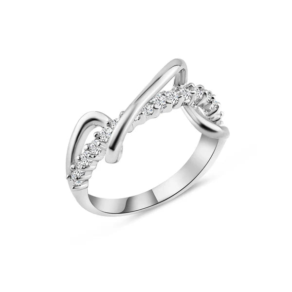 Sterling Silver 925 Winding Zigzag CZ Ring - SSLR016