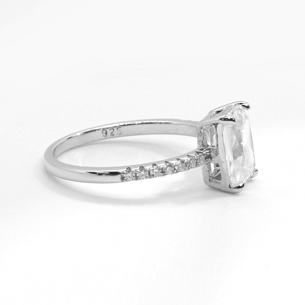 Sterling Silver Moissanite Ring featuring 2.00ct (6mm by 8mm) Emerald Cut Center Stone